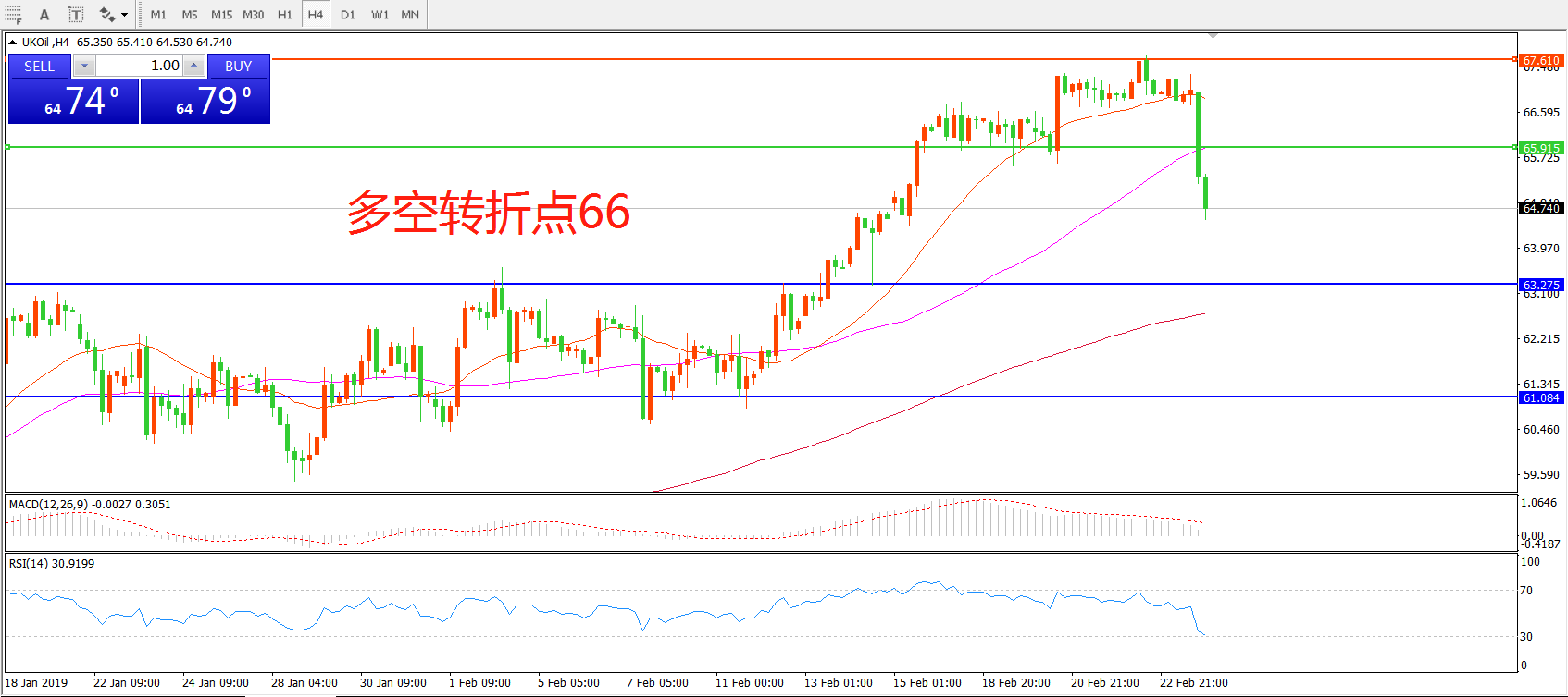交易策略:在66.00之下看跌,目标61.00   58.00