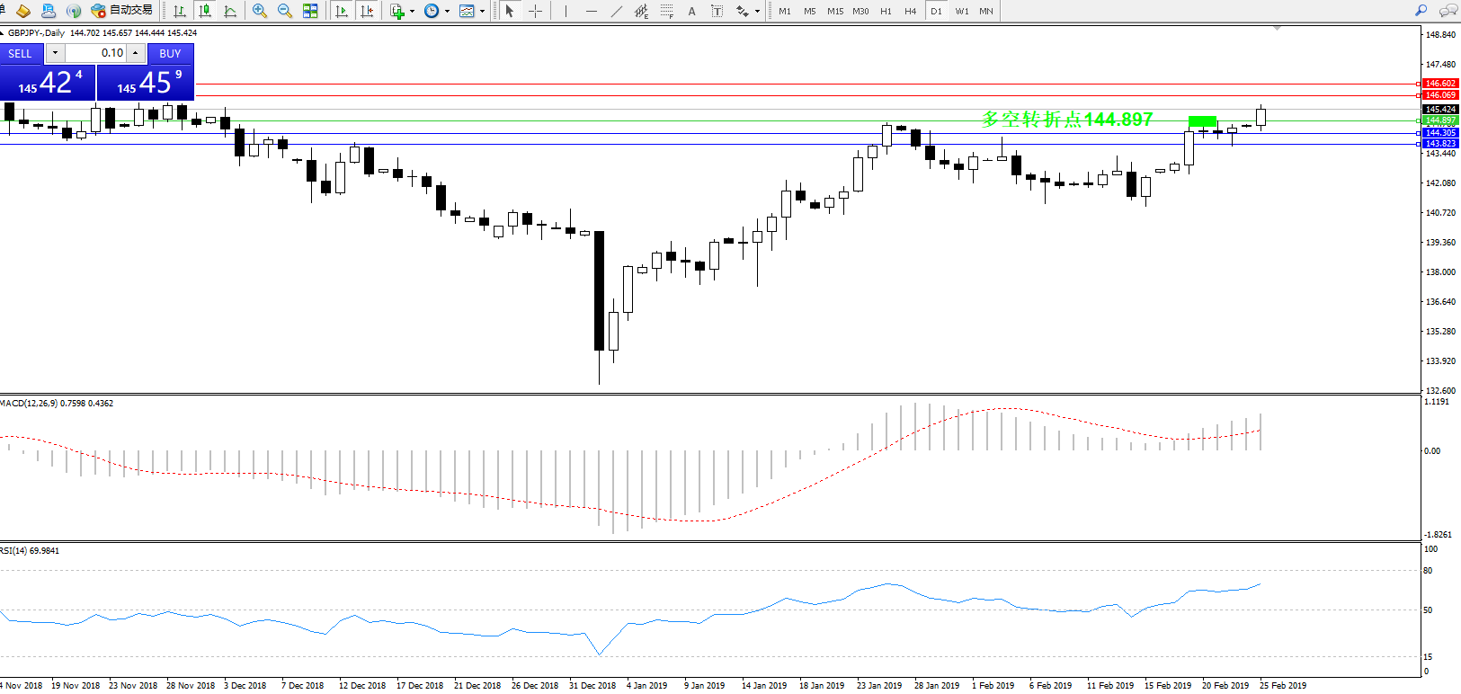 交易策略:144.897上方看涨,目标146.069、146.602