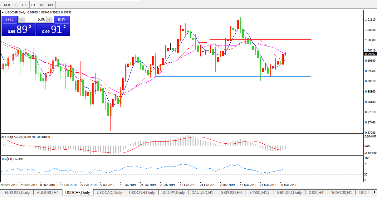 美元兑瑞郎USDCHF 日线图: