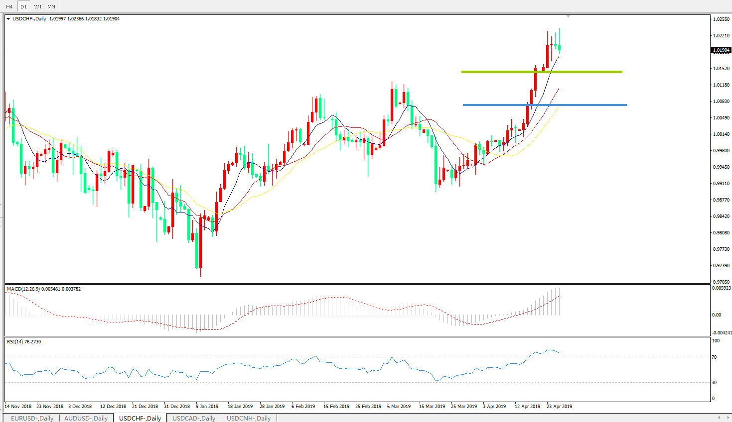 美元瑞郎USDCHF   日线图: