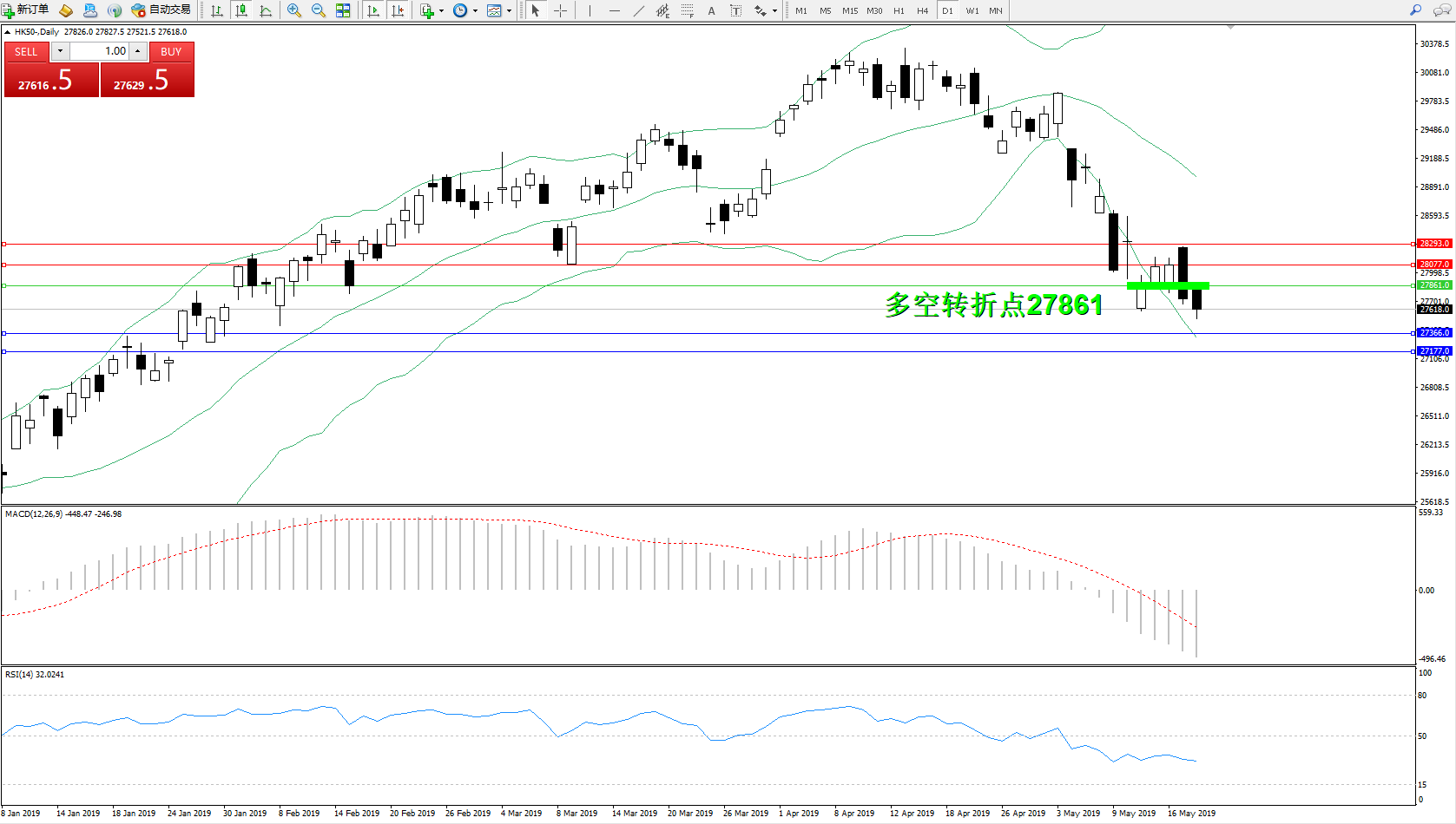 恒指HK50 ——日K线图显示: