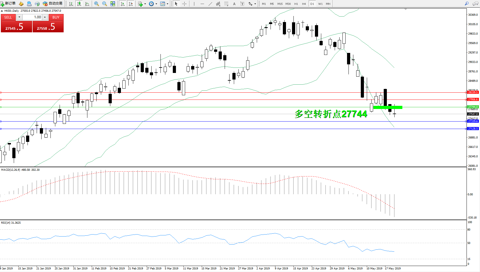 交易策略:27744下方看跌,目标27339、27128