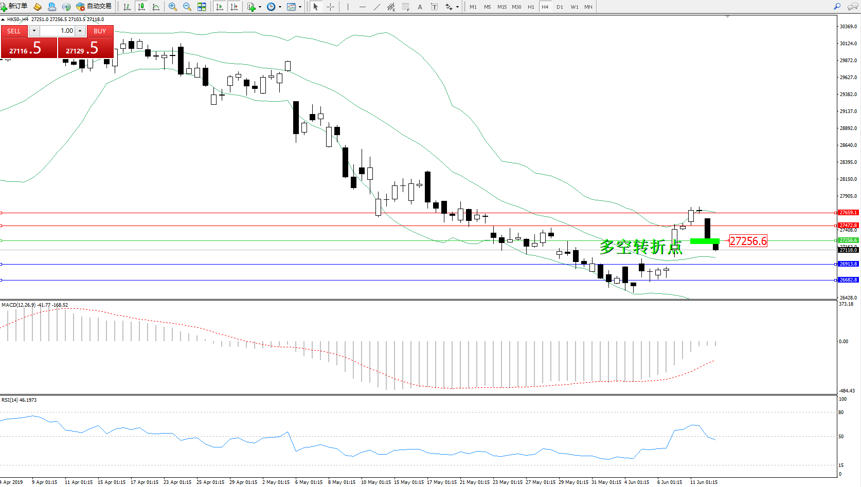 恒指周三大幅调整,早间低开低走,全日呈现无抵抗的单边下挫,截至收盘,恒指跌1.73%,报27308.5点,蓝筹股几乎全线走低。其中,舜宇光学跌4.69%,新世界跌2.78%,石药、中石油、瑞声跌逾2%。科网股集体走低,舜宇跌6.45%,瑞声跌4.7%,富智康跌6.25%,雷蛇跌4.6%。2019年股市呈N型走势、熊牛转折,现在是N的第二笔,时间比空间更重要,淡化调整空间。时间上,目前股市在构筑长期的底部区域,适合精选各领域的核心资产并且‘熬’着、做时间的好朋友,但是,短期并不适合频繁交易。