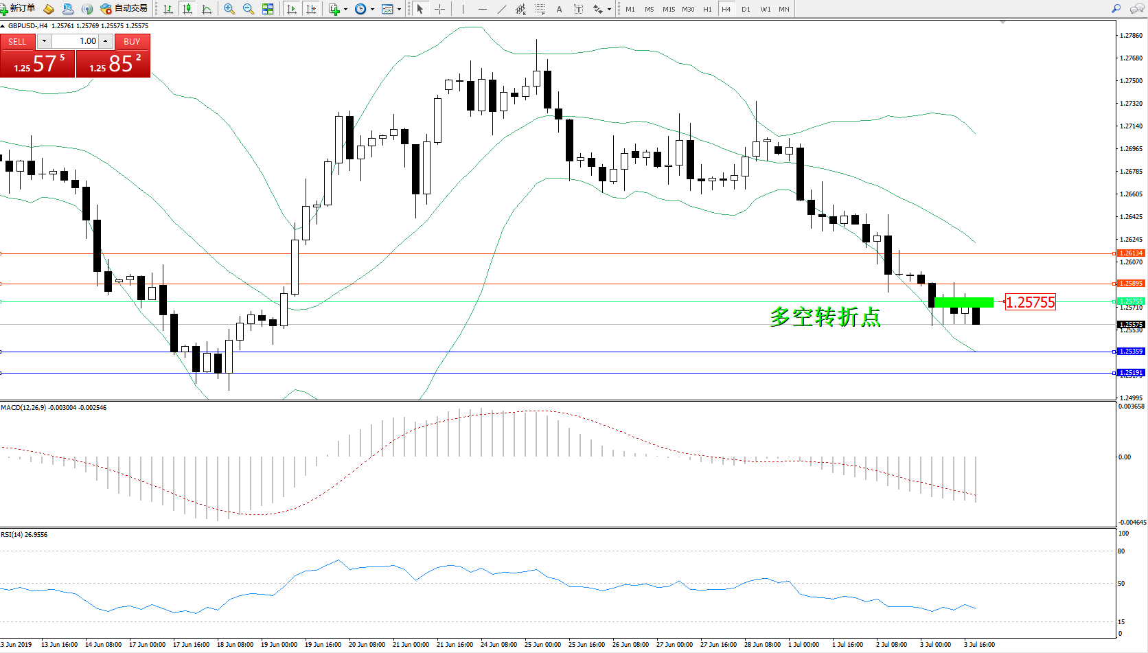 交易策略:1.25755下方看跌,目标1.25359、1.25191
