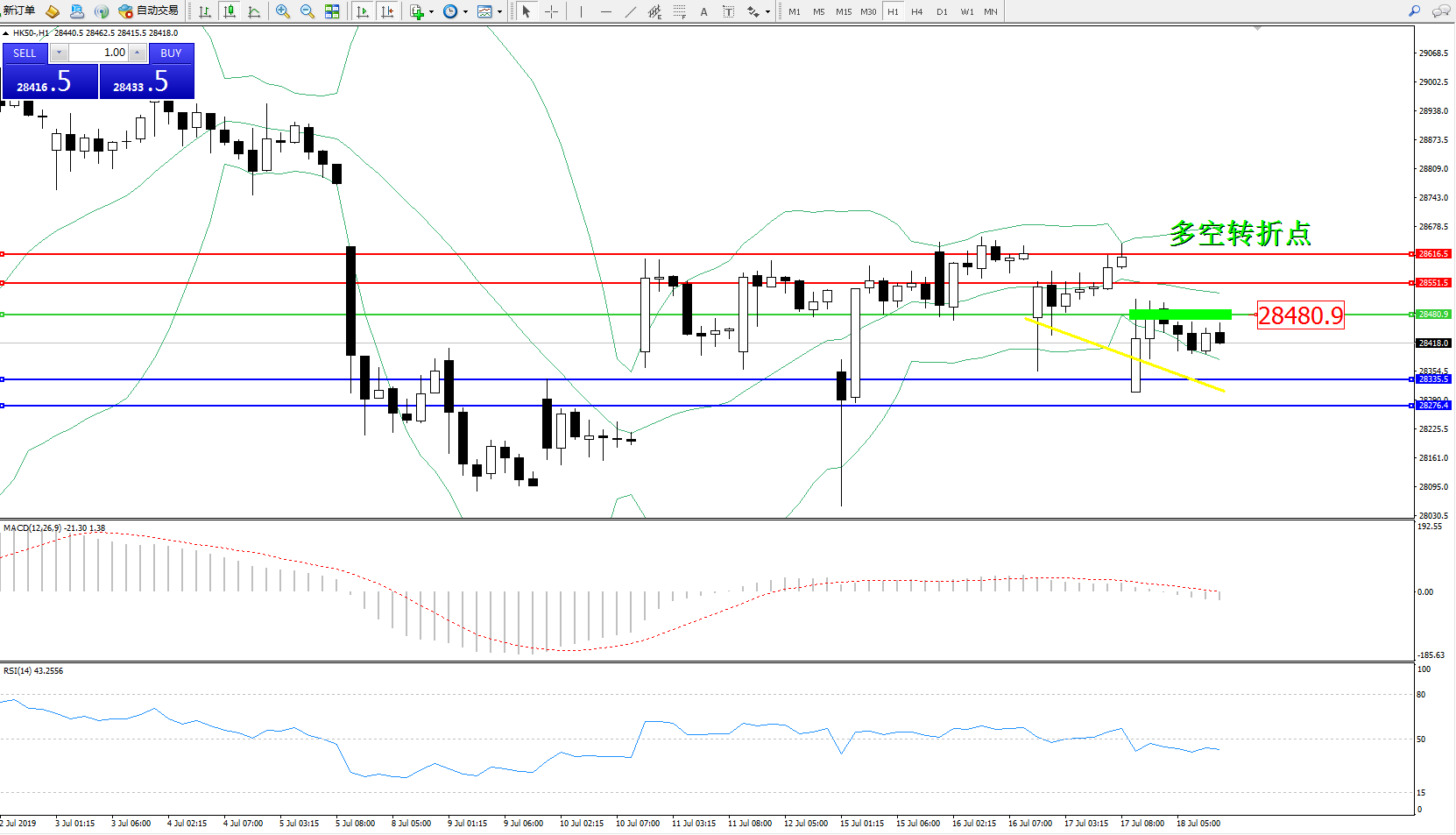 恒指HK50 ——1小时K线图显示: