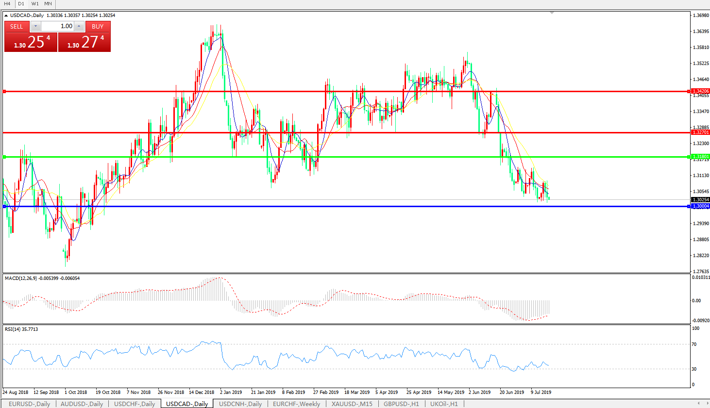 美元兑加元USDCAD    日线图: