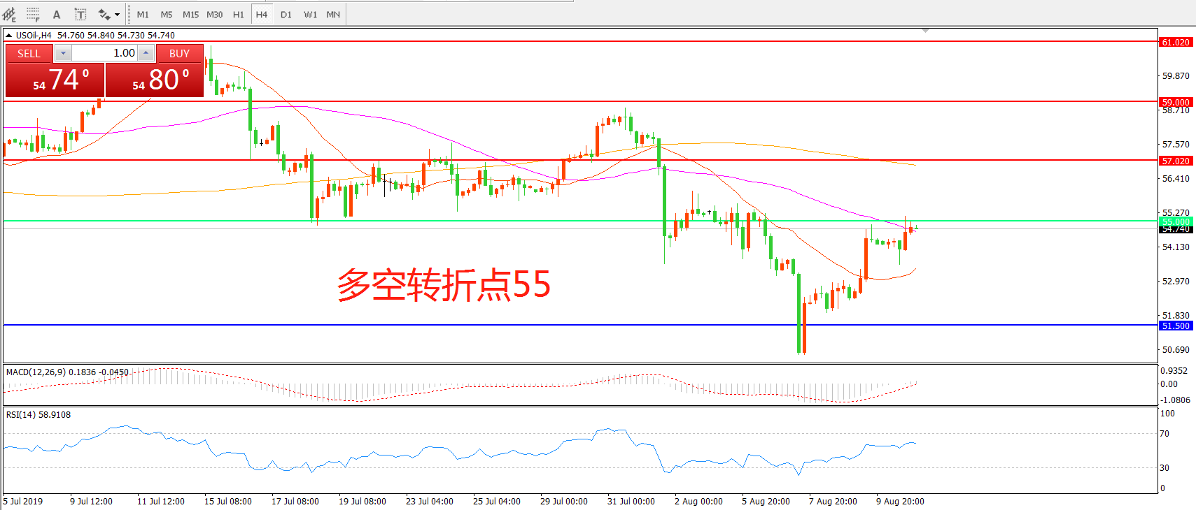 多空转折点:55.00