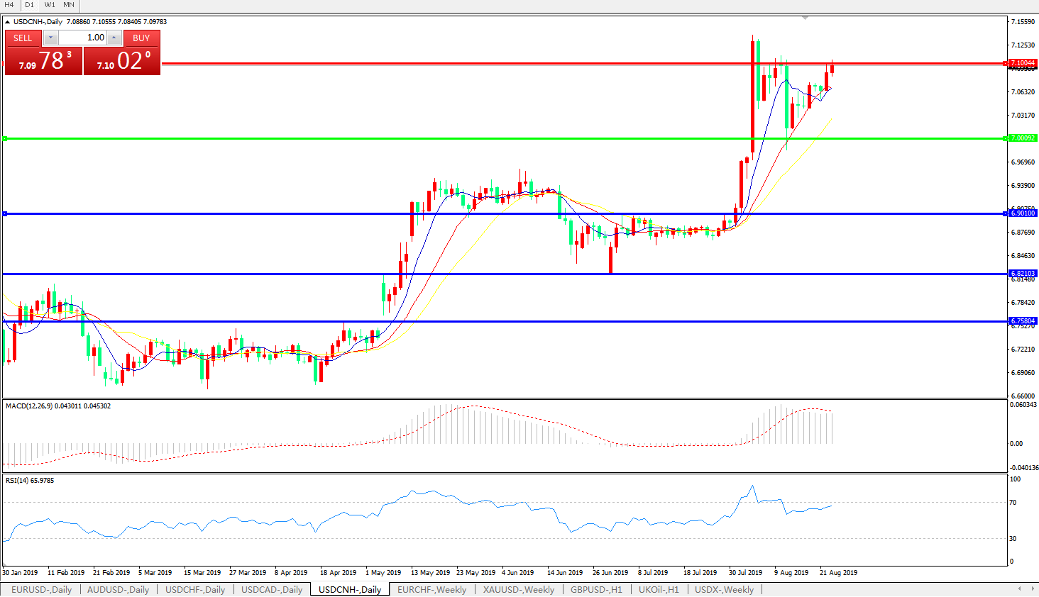 交易策略: 在7.0000之上,看涨,目标价位为7.1000,然后为7.2000。