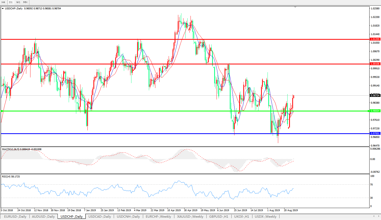美元兑瑞郎USDCHF 日线图: