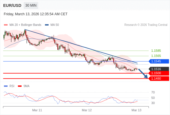 在 1.1545 之下,看跌,目标价位为 1.1500 ,然后为 1.1480 。