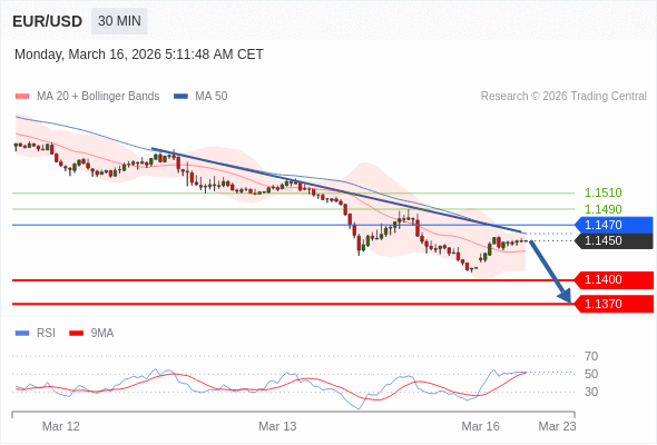 交易策略: 在 1.1470 之下,看跌,目标价位为 1.1400 ,然后为 1.1370 。
