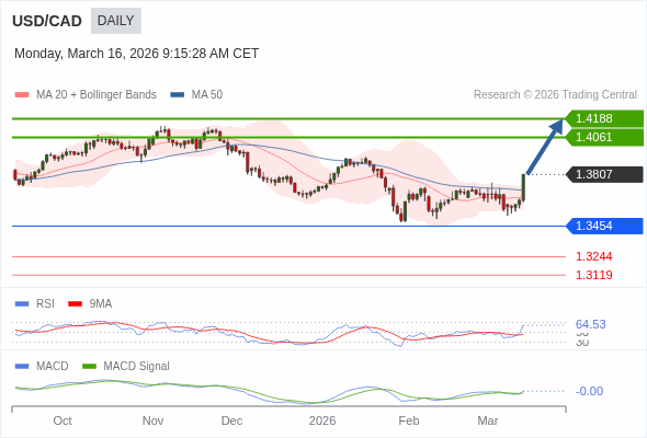 美元/加元 短线 : 看涨,当 1.3454 未被跌破。