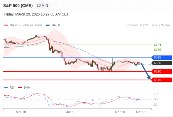 美国标普500指数期货 (M6) 当日内: 短期关键阻力位在6695。
