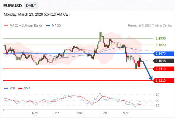交易策略: 在 1.1670 之下,看跌,目标价位为 1.1410 ,然后为 1.1210 。