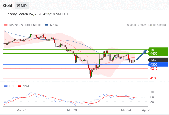 在 4300 之上,看涨,目标价位为 4455 ,然后为 4510 。