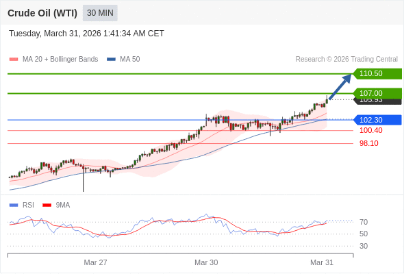 在 102.30 之上,看涨,目标价位为 107.00 ,然后为 110.50 。