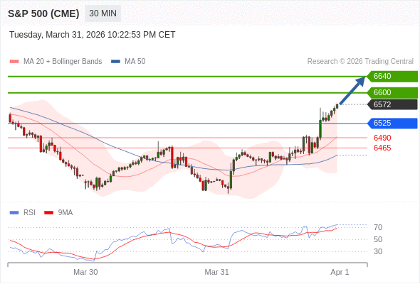 在 6525 之上,看涨,目标价位为 6600 ,然后为 6640 。