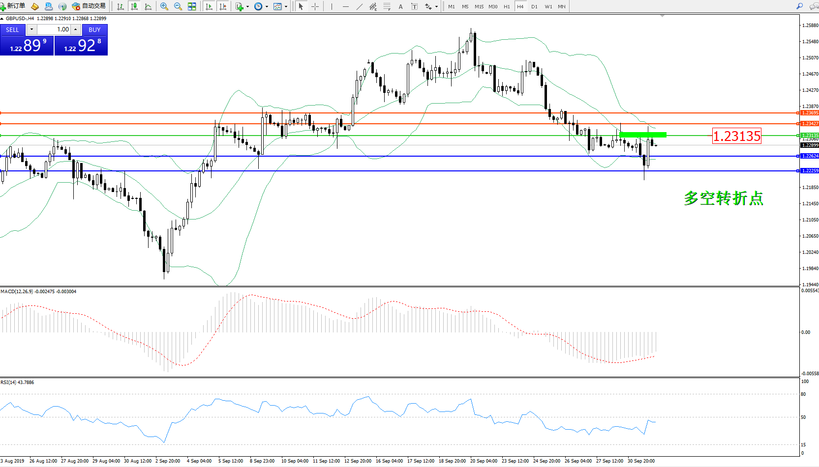 交易策略:1.23135下方看跌,目标1.226241.22259