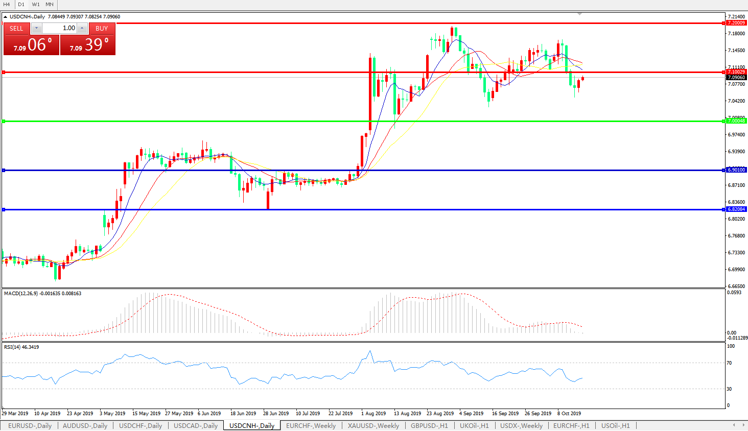 交易策略: 在7.0000之上,看涨,目标价位为7.1000,然后为7.2000。
