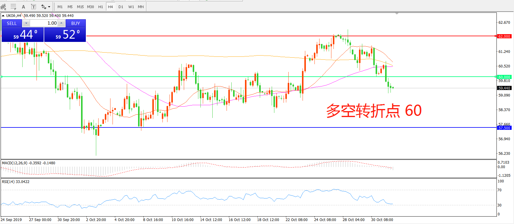多空转折点:60.00