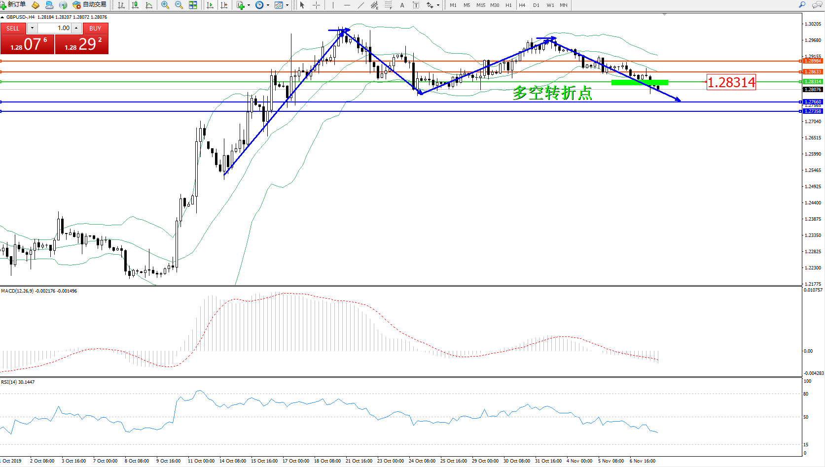 交易策略:1.28314下方看跌,目标1.276601.27358