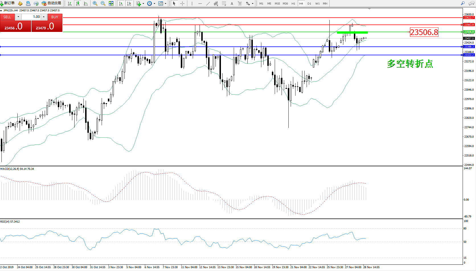 备选策略:23506上方看涨,目标23563、23622