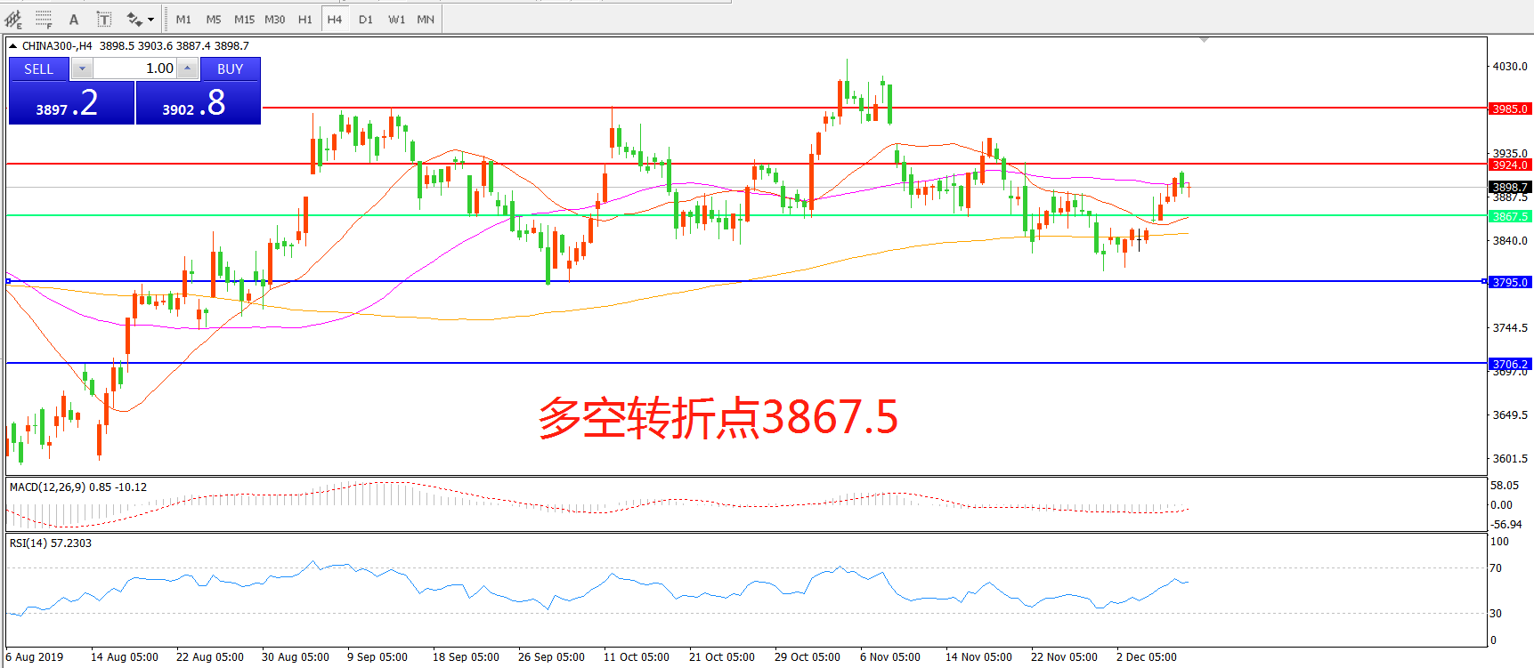 多空转折点:3867.50
