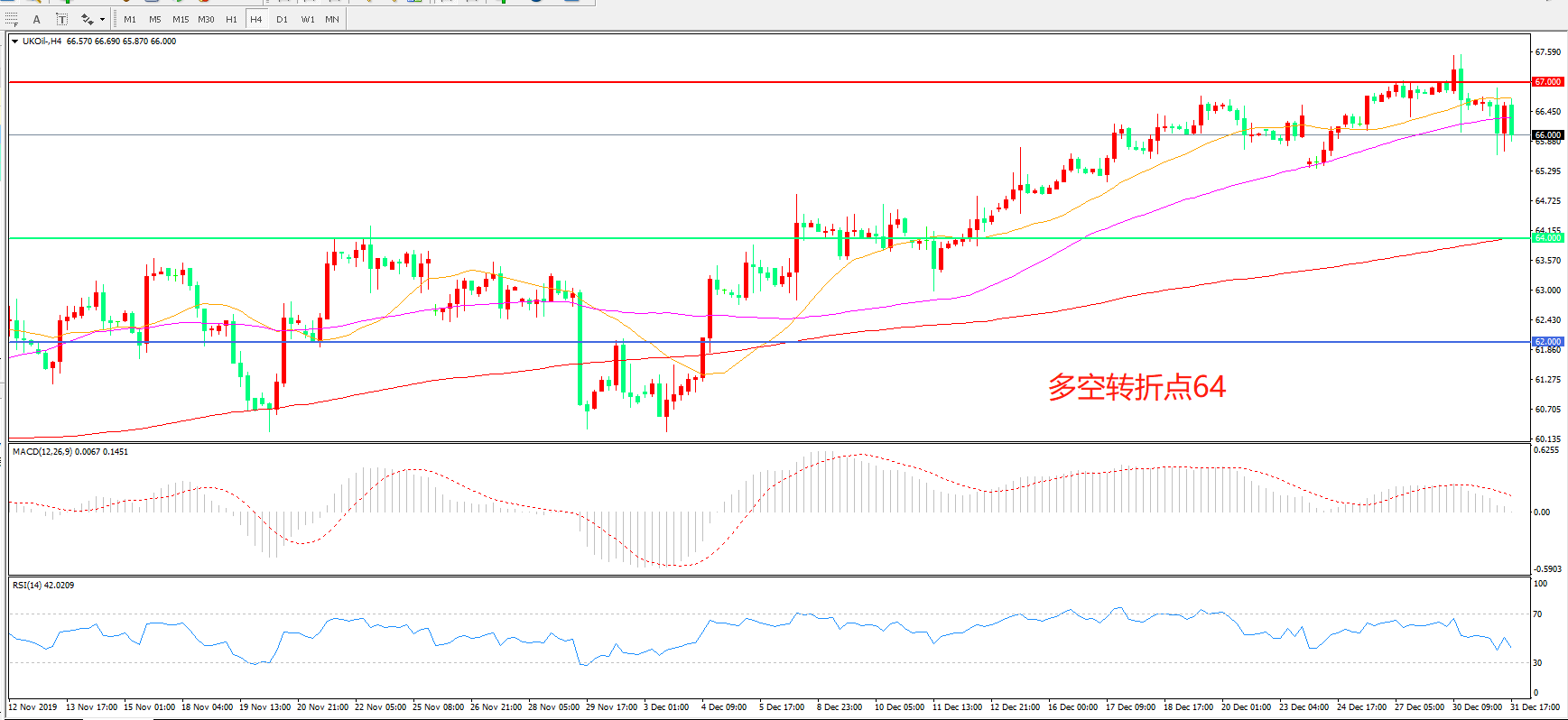 交易策略:在64.00之上看涨,目标67.00    69.50