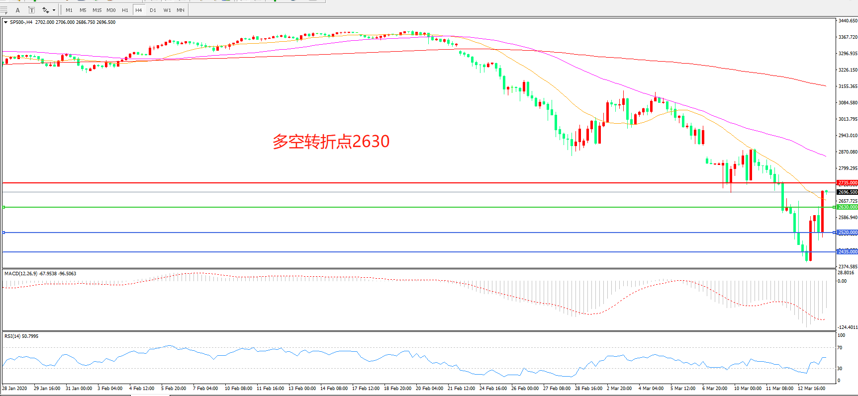 上周,美股经历了史上最疯狂的一周,周内因指数跌幅过大,发生两次熔断,周四即使美联储紧急宣布高达1.5万亿美元的“救市”措施,但依然未能在当天止住跌势,但在周五,随着特朗普宣布推出一系列应对新冠疫情措施,缓解了部分担忧情绪,市场又在当天盘尾出现报复性拉涨,当天三大股指涨幅接近10%,标普500暴涨后,收报2696.50点。