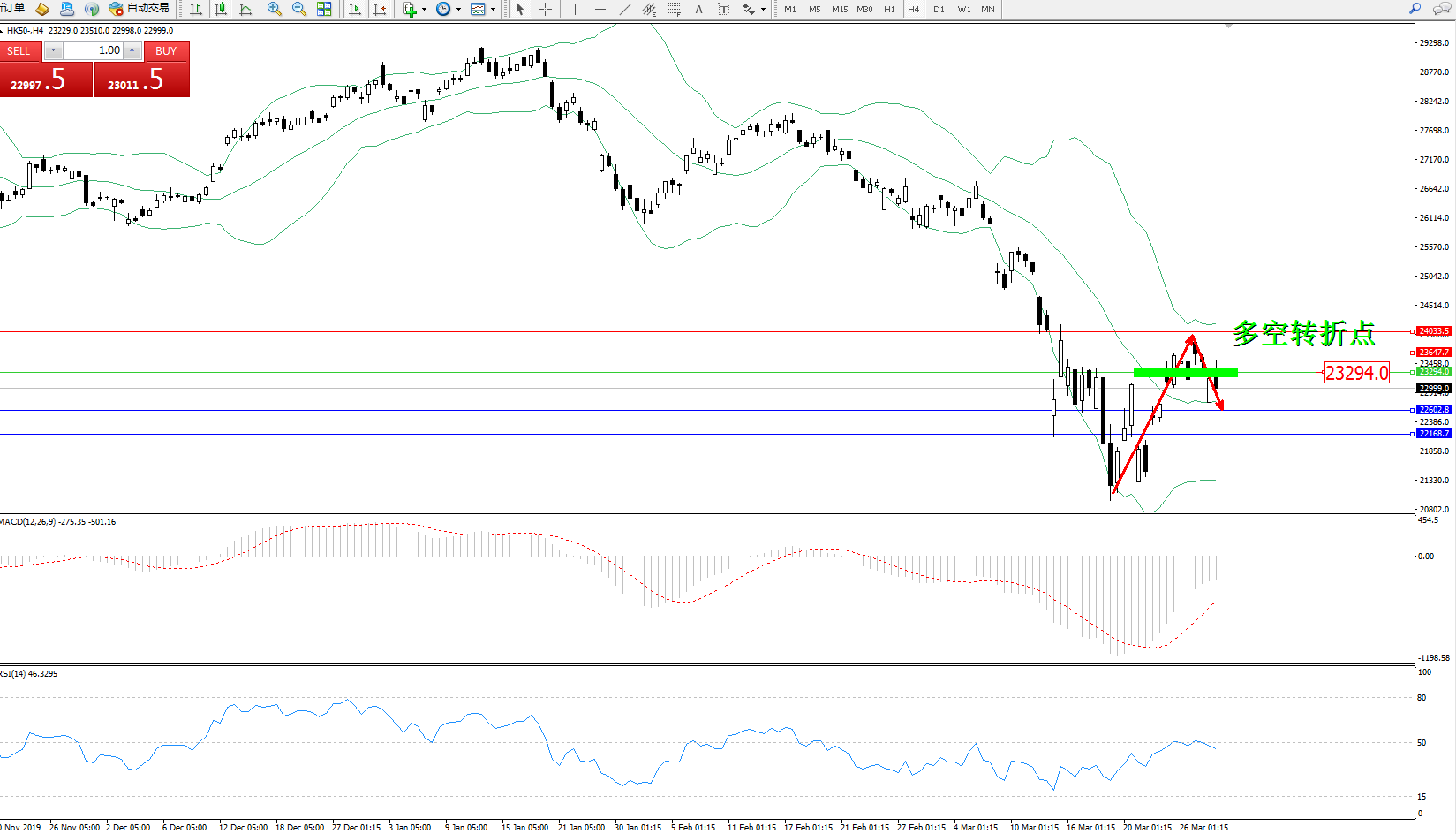 香港恒生指数3月30日(周一)收盘下跌309.17点,跌幅1.32%,报23175.11点;港A两地市场齐跌。港股早盘大幅低开,午后主要股指冲高,恒指国指一度飘红,随即又震荡回落下跌,市场仍显弱势。大市交易量明显下滑,市场观望情绪浓厚。主板成交量为1079.49亿港元,港股通净流入49.09亿港元。港股市场多只细价股出现集体大跌走势,港股市场参与者普遍认为目前港股只会输钱不会输时间,在市场估值逼近历史低点的时候,产业资本、金融资本以及内地南下资金3股主力却在这时共振发力了。而相对来说,内地私募基金对港股的态度似乎还算保守。