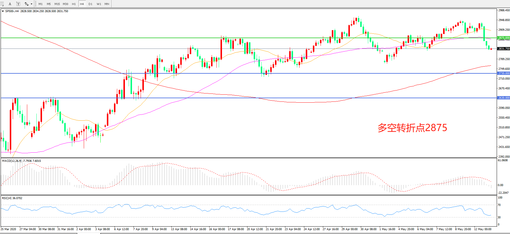 标普500 SP500   4小时图