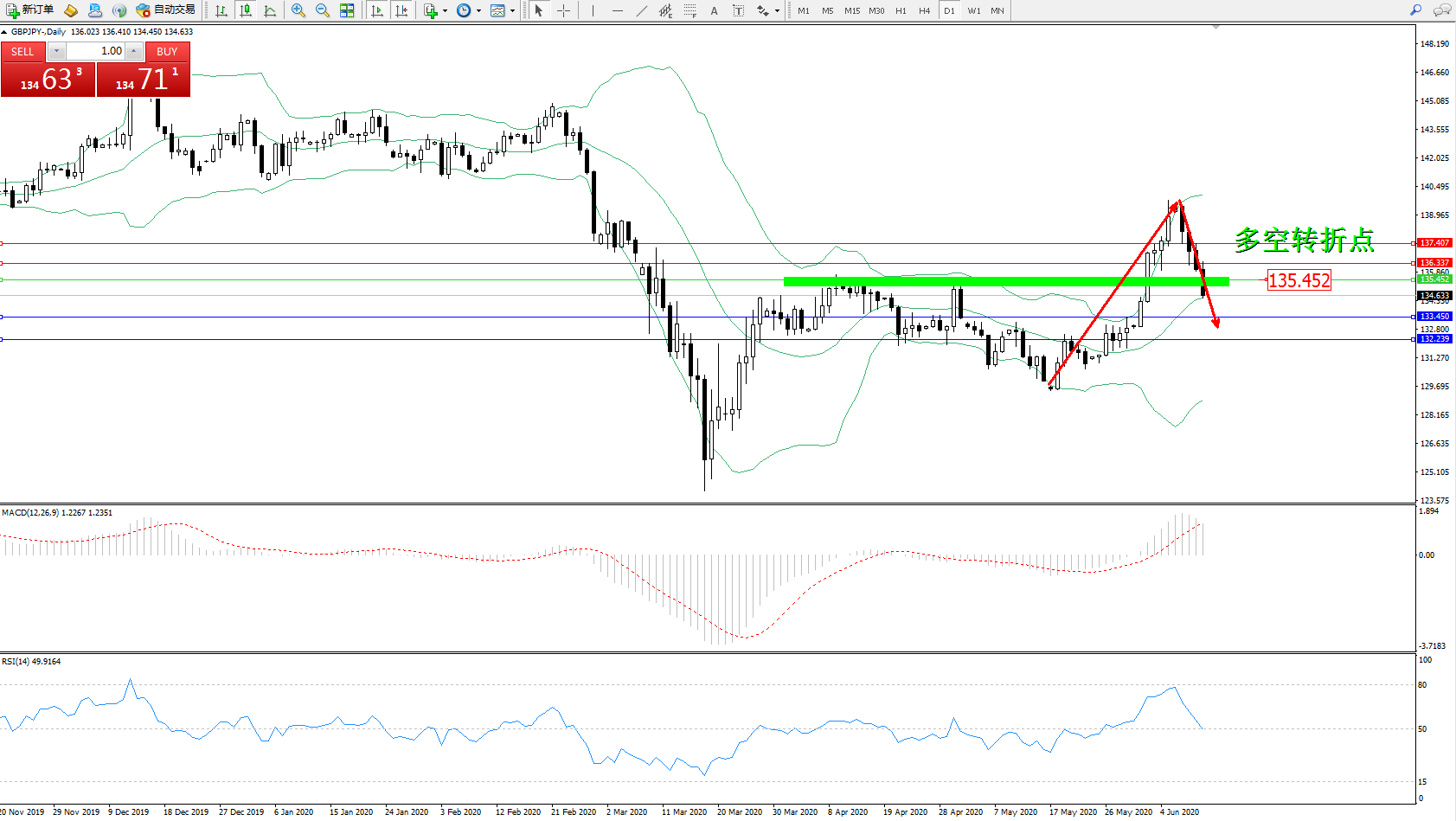 英镑兑日圆刚触及134.456附近,英国首相鲍里斯·约翰逊10日宣布解除疫情封锁的相关措施。这是英国自疫情封锁以来第三次宣布放松封锁,也是逐步“解封”幅度最大的一次。在当日举行的政府每日疫情发布会上,约翰逊宣布,从613日开始,单身成年家庭可以与其他任何规模家庭形成一个“互助群”,群内成员可以去彼此家里过夜,而不必保持社交距离。下周一(615)起,非必需品商店在遵守社交距离规定前提下可以重新营业。下周一起,英格兰的动物园、户外景点、露天影院开始重新开放。本周末起,礼拜场所将开放供私人祈祷。74日开始将进入“解封”计划的第3步,这一步包括开放酒吧、餐厅等领域。