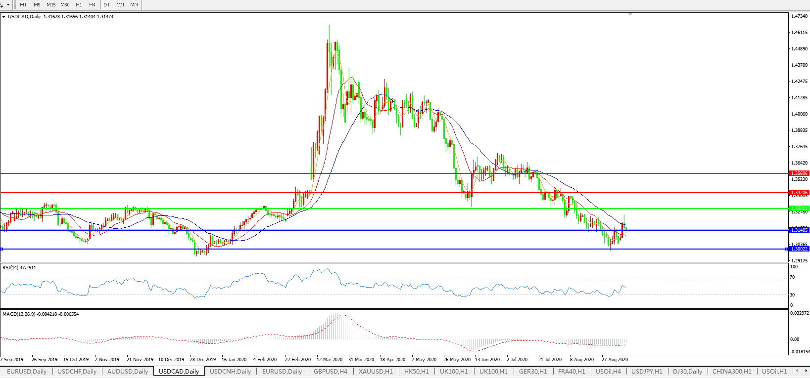 美元兑加元USDCAD    日线图: