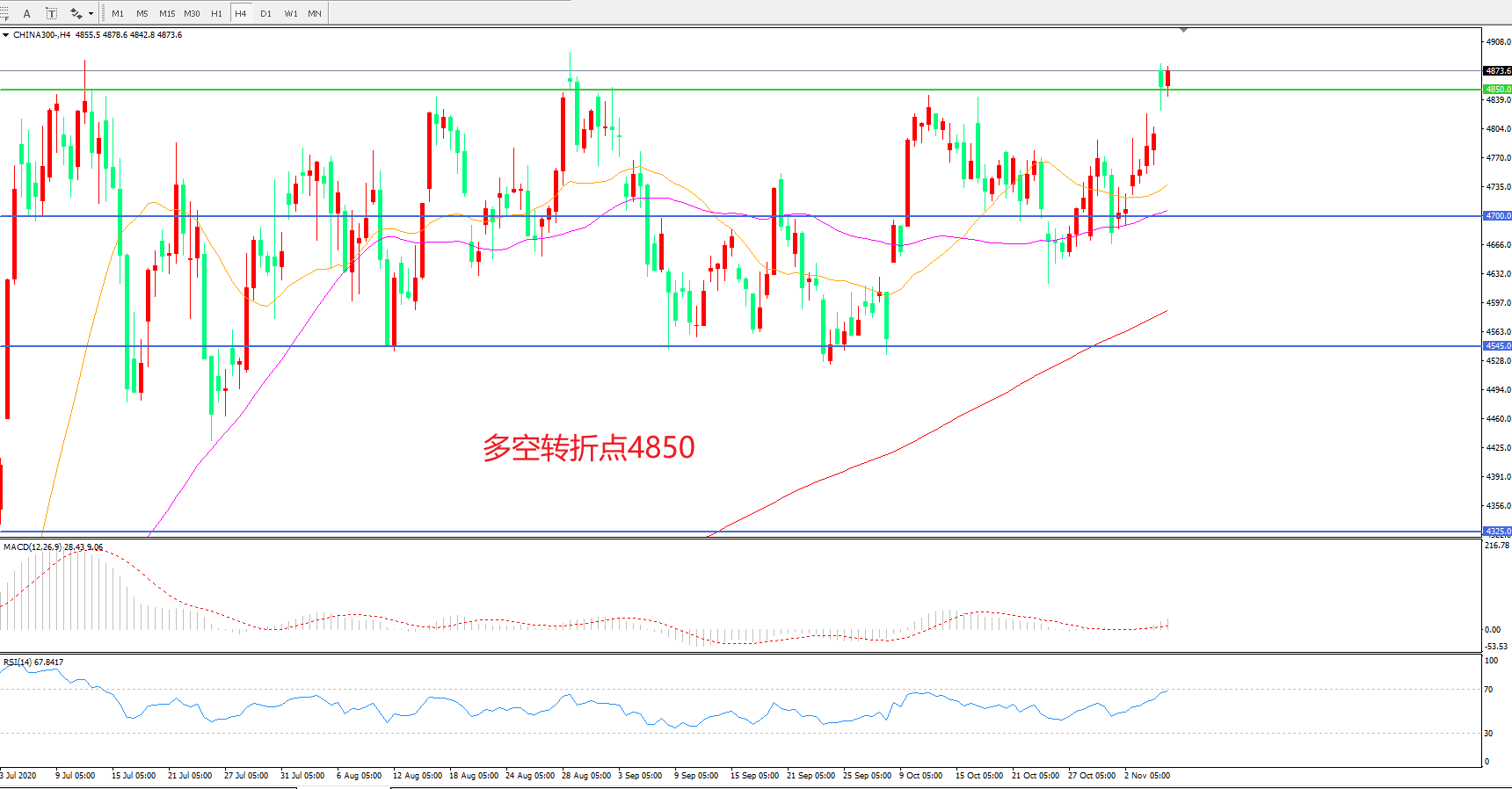 交易策略:在4850.00之上看涨,目标5000.00 5150.00