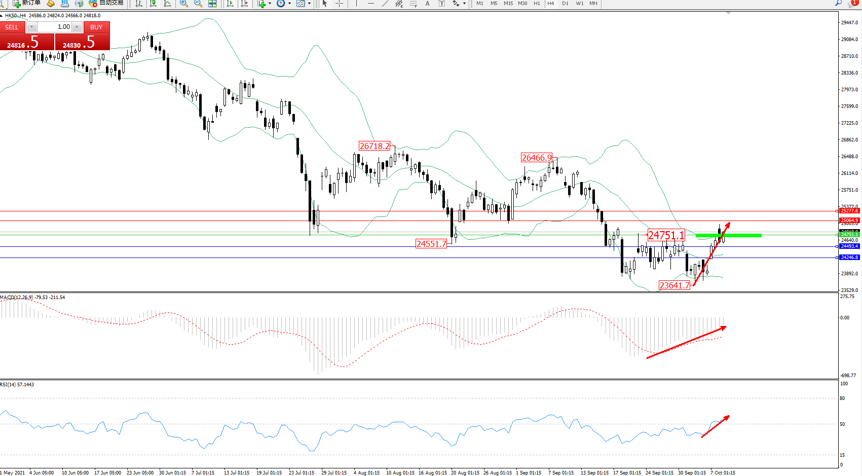 恒指HK50 ——4小时K线图显示: