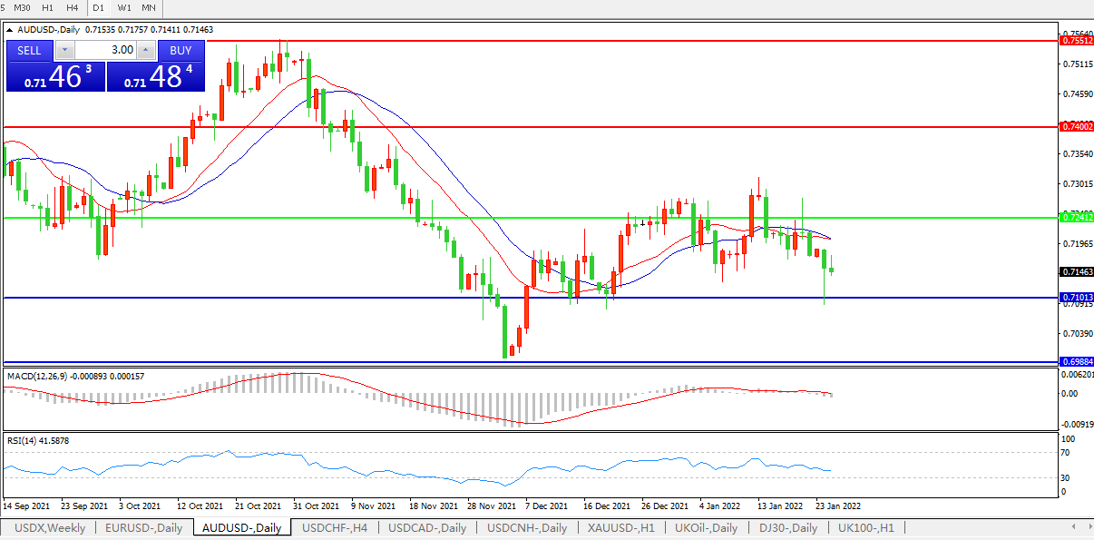 交易策略:0.7240下方看跌,目标0.7100、0.6980