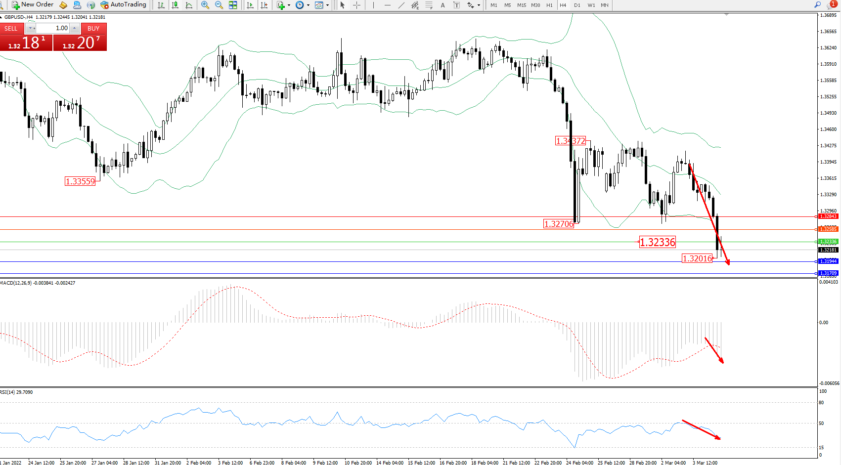 交易策略:1.32336下方看跌,目标1.31944、1.31709
