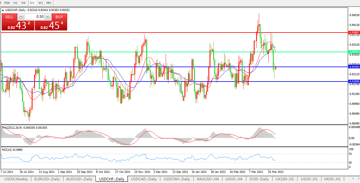 美元兑瑞郎USDCHF    日线图:
