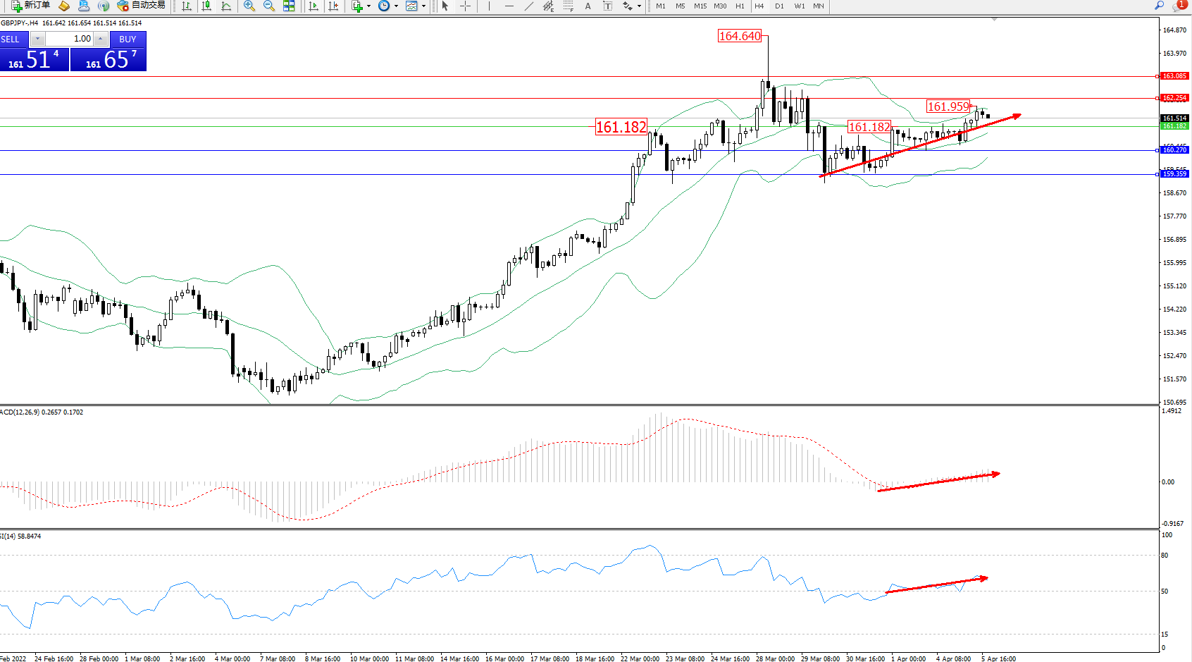交易策略:161.182上方看涨,目标162.254、163.085