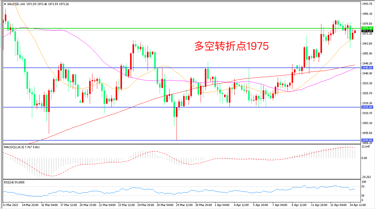 周四(4月14日),欧洲央行维持三大关键利率不变,符合市场预期。欧元兑美元在拉加德讲话后持续走低,美元指数一路上扬,现货黄金先跌后涨,收报1973.26美元/盎司。与此同时,在俄乌冲突的背景下,芬兰和瑞典两国重新激起关于是否加入北约的讨论,地缘政治问题将成为金价的有力支撑。