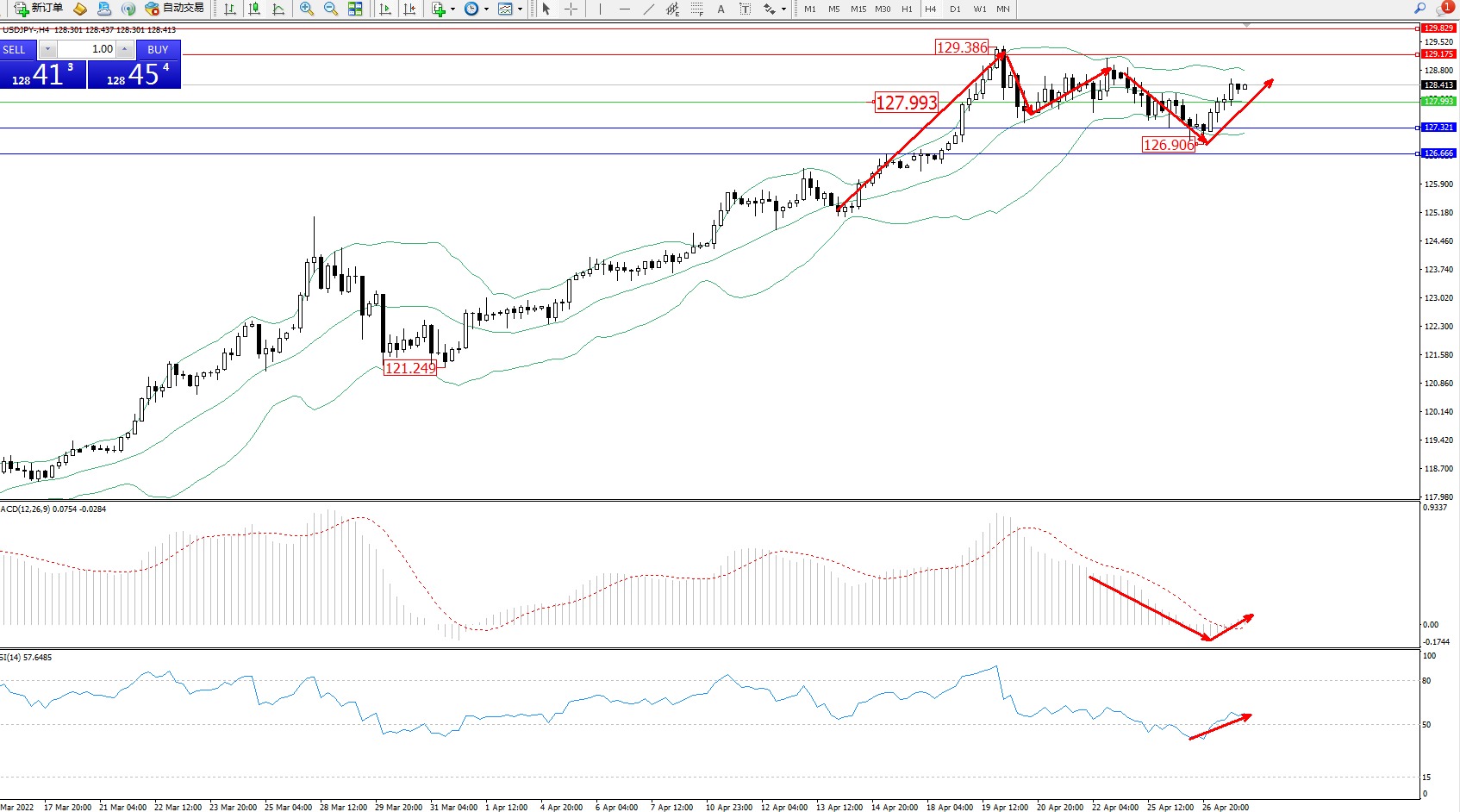 交易策略:127.993上方看涨,目标129.175、129.829