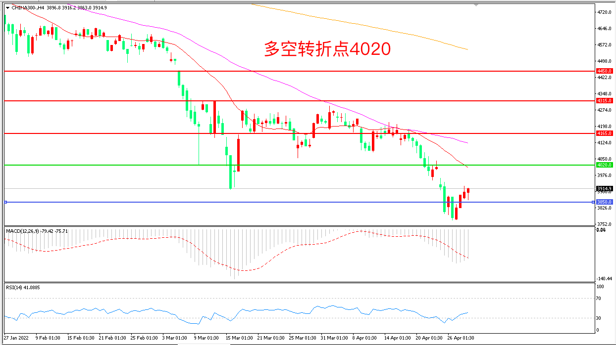 4小时图看,沪深300小幅反弹,短线走势有所企稳, 均线系统年和形成上方阻力,MACD绿柱缩短,RSI指标走平,日内冲高回落概率较大。