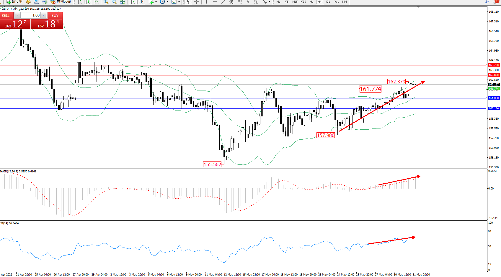 交易策略:161.774上方看涨,目标162.890、163.708