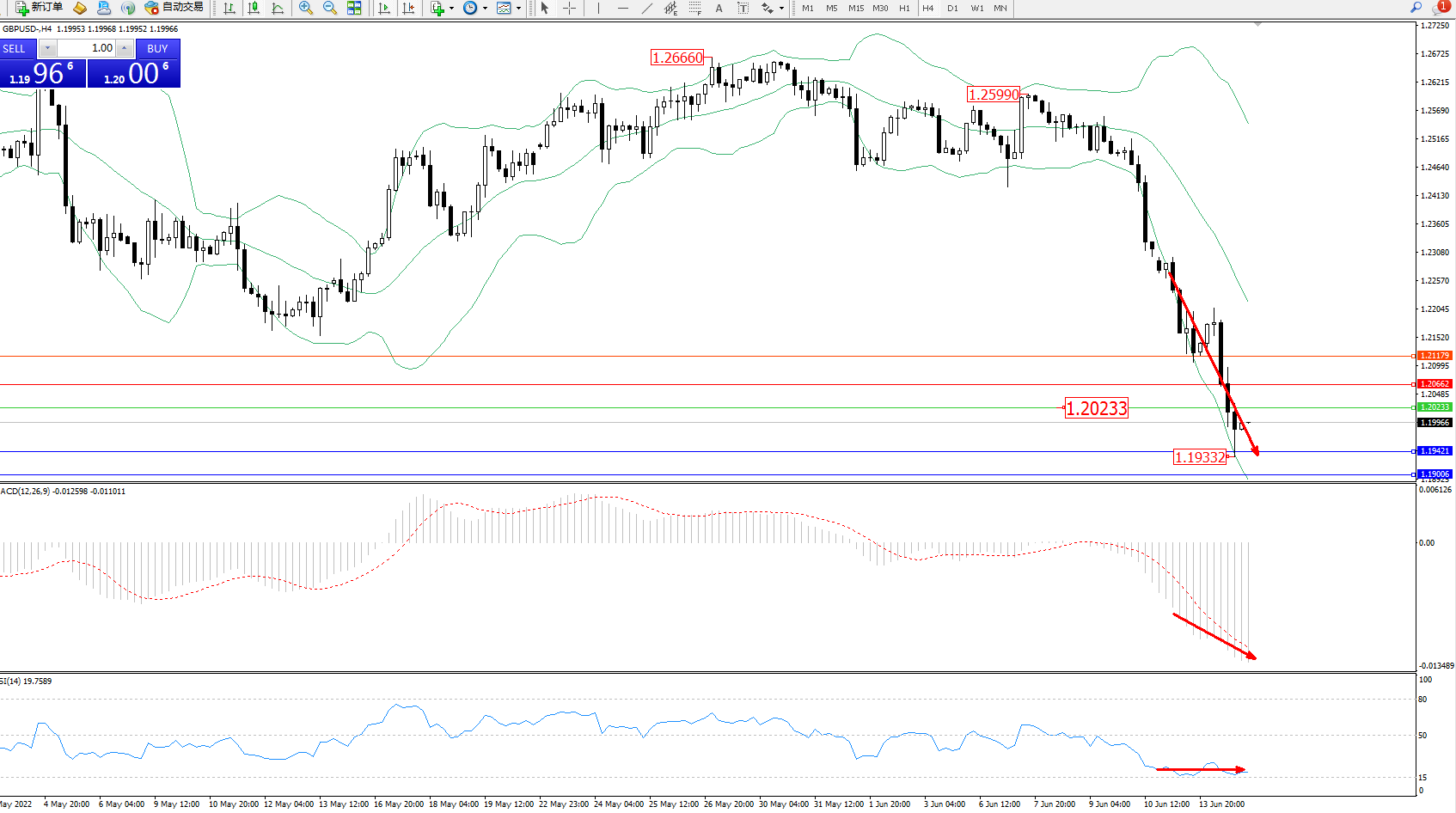 英镑美元GBPUSD ——4小时K线图显示: