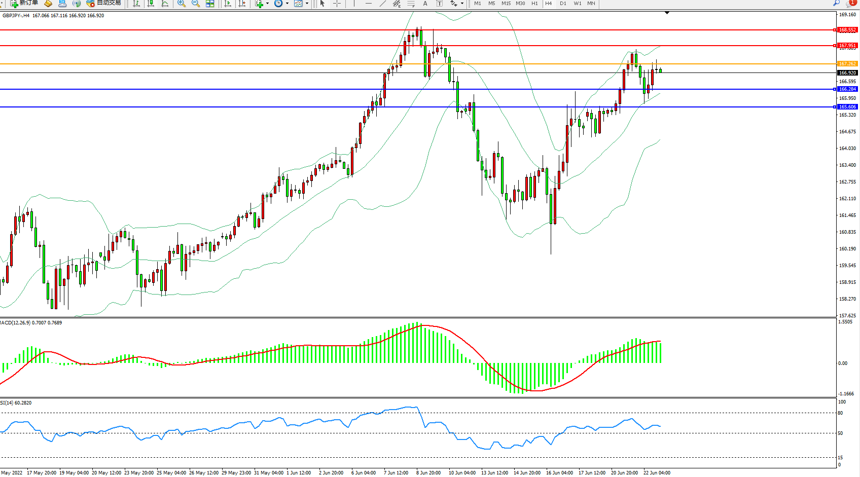 交易策略:167.262下方看跌,目标166.284、165.606