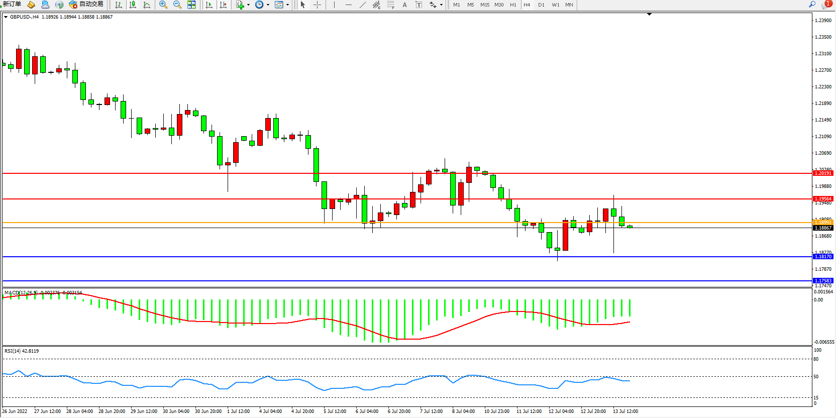 英镑美元GBPUSD ——4小时K线图显示: