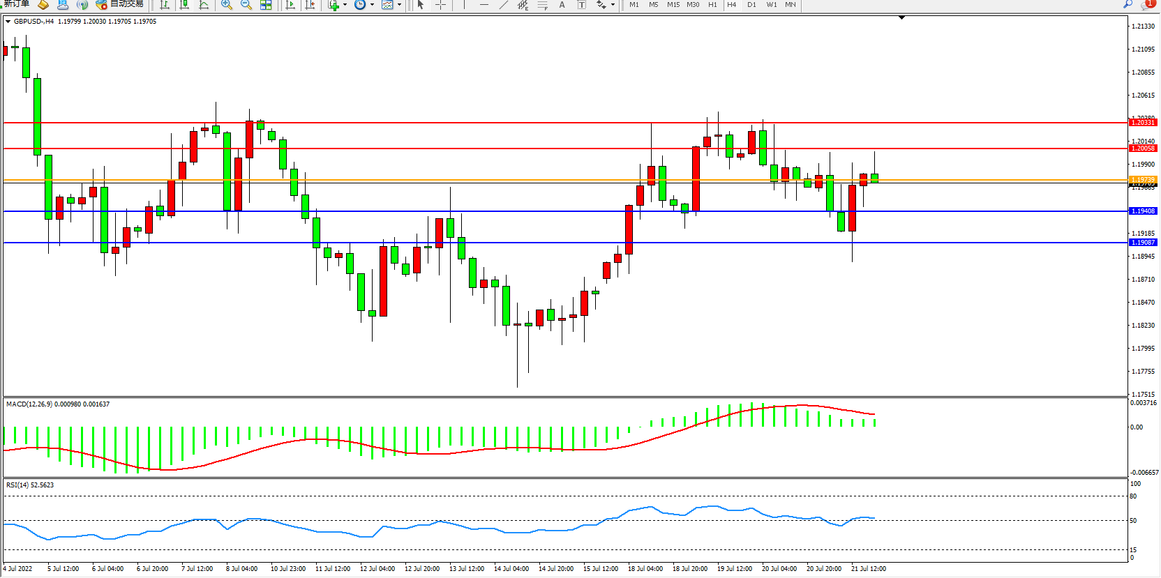 备选策略:1.19739上方看涨,目标1.20058、1.20331