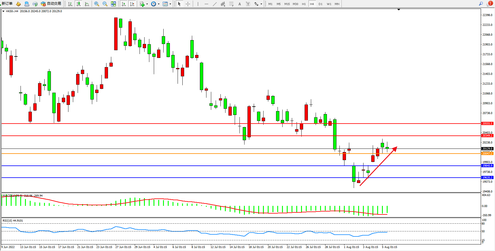 香港恒生指数8月5日(周五)收盘上涨27.9点,涨幅0.14%,报20201.94点;恒生科技指数涨0.79%,三者均录得3连涨。大型科技股涨跌不一,百度、小米小幅上涨,网易、阿里巴巴、腾讯均走低;国产替代进程有望加速,半导体股延续昨天上涨行情,华虹半导体领涨,中芯国际录得3连涨;军工股回调明显。今日南下资金净流入15.93亿港元,大市成交额为851亿港元。