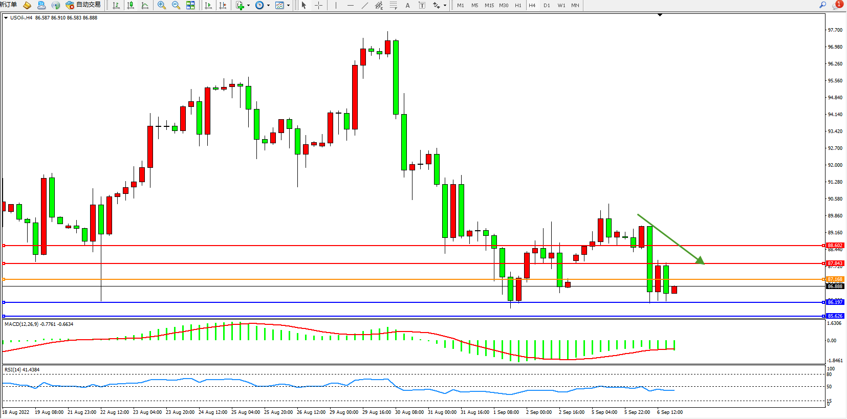 原油USOil——4小时K线图显示: