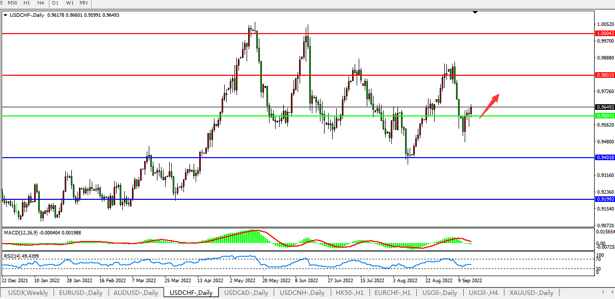交易策略:0.9600上方看涨,目标0.9800,1.0000